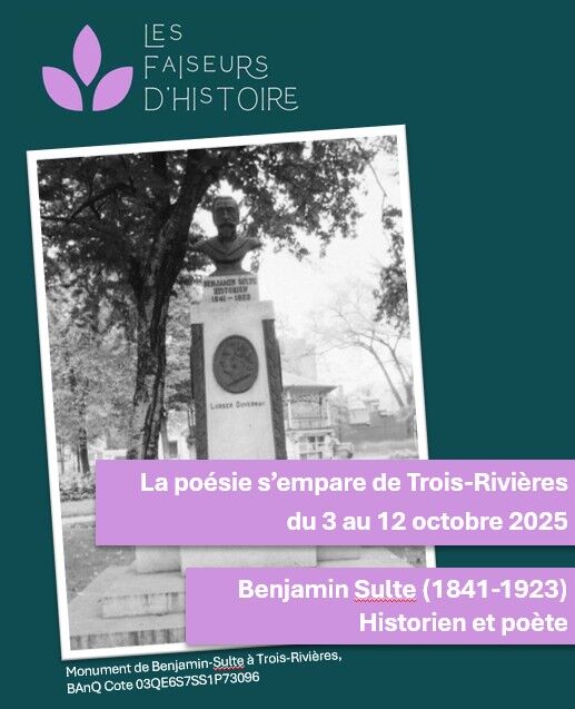 Mon ami et collègue faiseur René Beaudoin suggérait de nous plonger dans la poésie dans le cadre du Festival International de poésie de Trois-Rivières. Je me suis donc retrouvé à compulser les recueils de Benjamin Sulte qui aimait bien, de temps en temps, jouer du vers à sa manière.