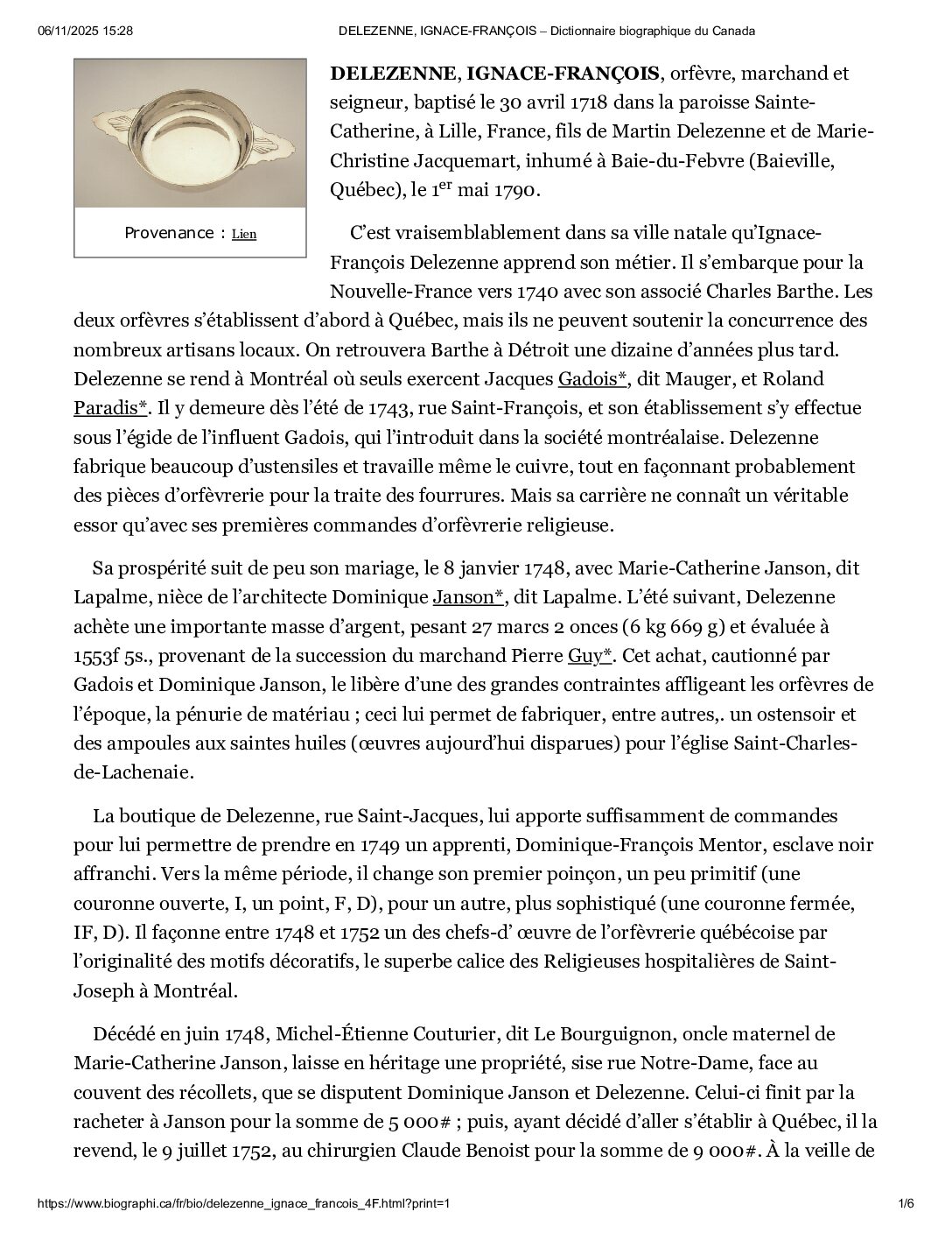 DELEZENNE, IGNACE-FRANÇOISRobert DeromeTexteRobert Derome, « DELEZENNE, IGNACE-FRANÇOIS », dans Dictionnaire biographique du Canada, vol. 4, Université Laval/University of Toronto, 2003– , consulté le 19 févr. 2026https://www.biographi.ca/fr/bio/delezenne_ignace_francois_4F.htmlTrois-Rivières (avant le 1er janvier 2002)https://troisrivieresnumerique.ca/documents/delezenne-ignace-francois/