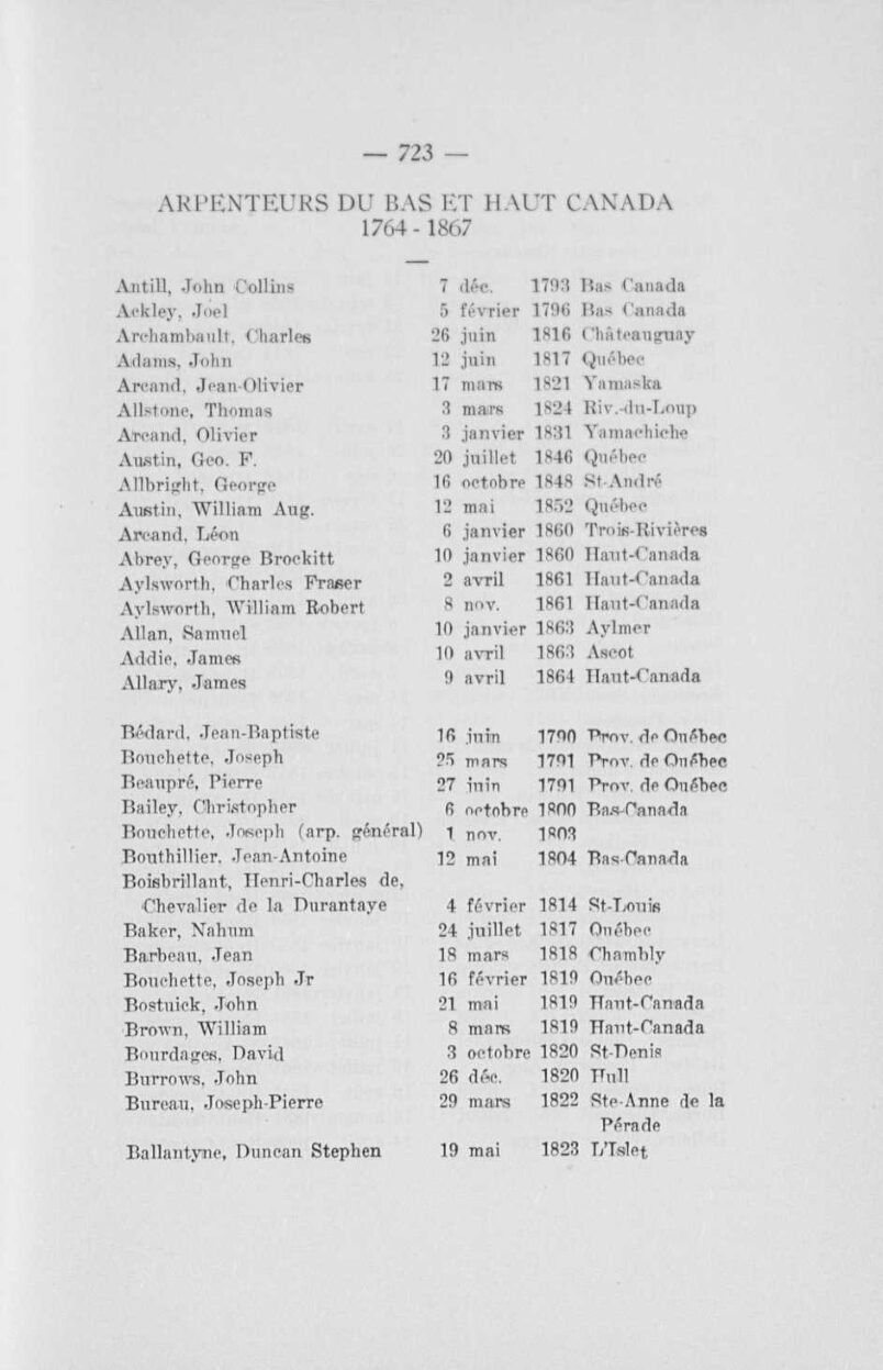“Arpenteurs du Bas et Haut-Canada, 1764-1867”TexteBulletin des recherches historiques : bulletin d'archéologie, d'histoire, de biographie, de numismatique, etc. /, 1933-12, Collections de BAnQ.https://numerique.banq.qc.ca/patrimoine/details/52327/2657400Trois-Rivières (avant le 1er janvier 2002)https://troisrivieresnumerique.ca/documents/arpenteurs-du-bas-et-haut-canada-1764-1867/