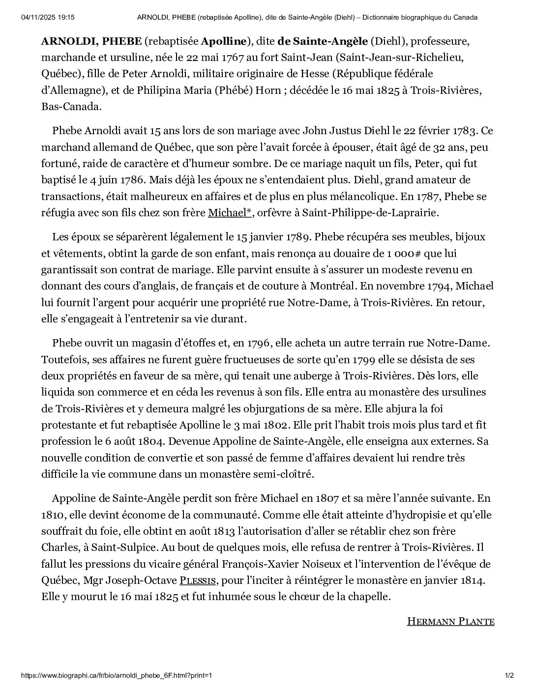 SourceNive Voisine, « DESILETS, LUC », dans Dictionnaire biographique du Canada, vol. 11, Université Laval/University of Toronto, 2003– , consulté le 19 févr. 2026