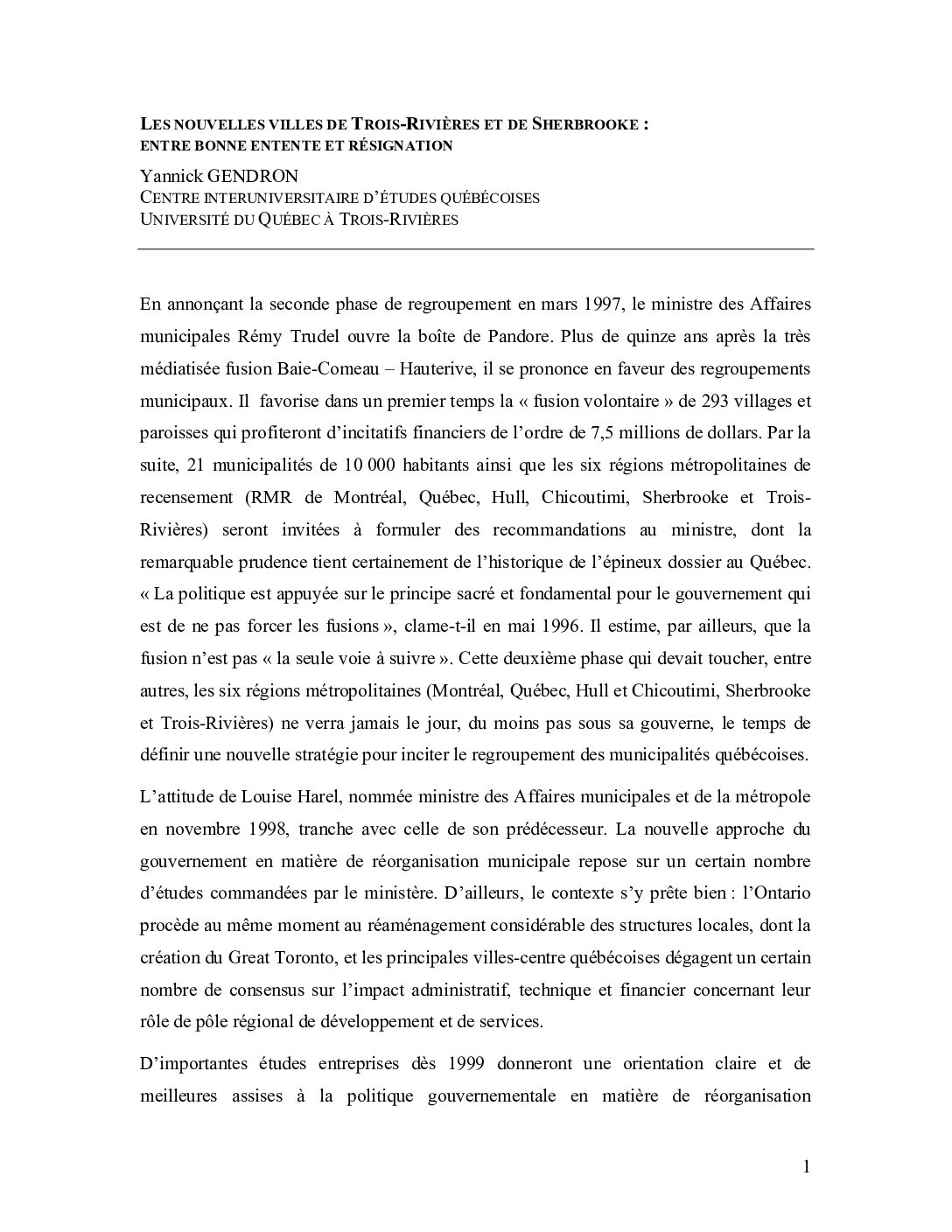 Texte de l'article préparé pour Roch Côté, "Québec, 2002", Montréal, Fides, 2011, p. …