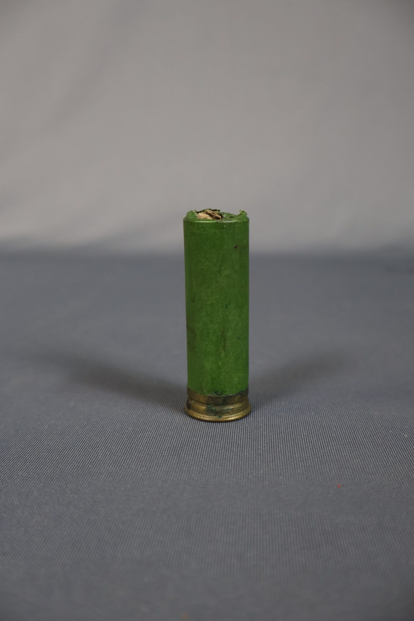 Cartouche de fusil de chasse de calibre 12, constituée d’une douille en carton vert et d’un …