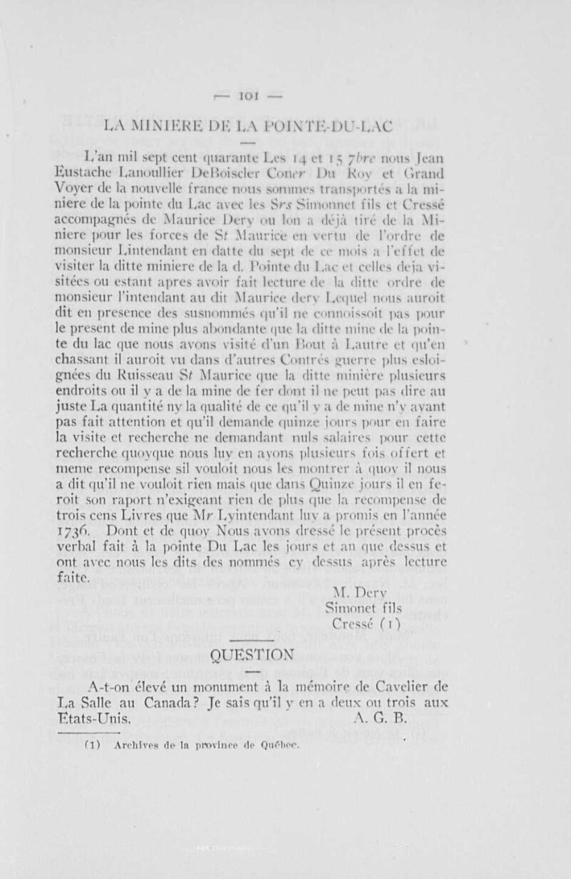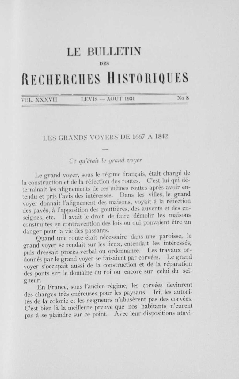 Article paru dans le Bulletin des recherches historiques.