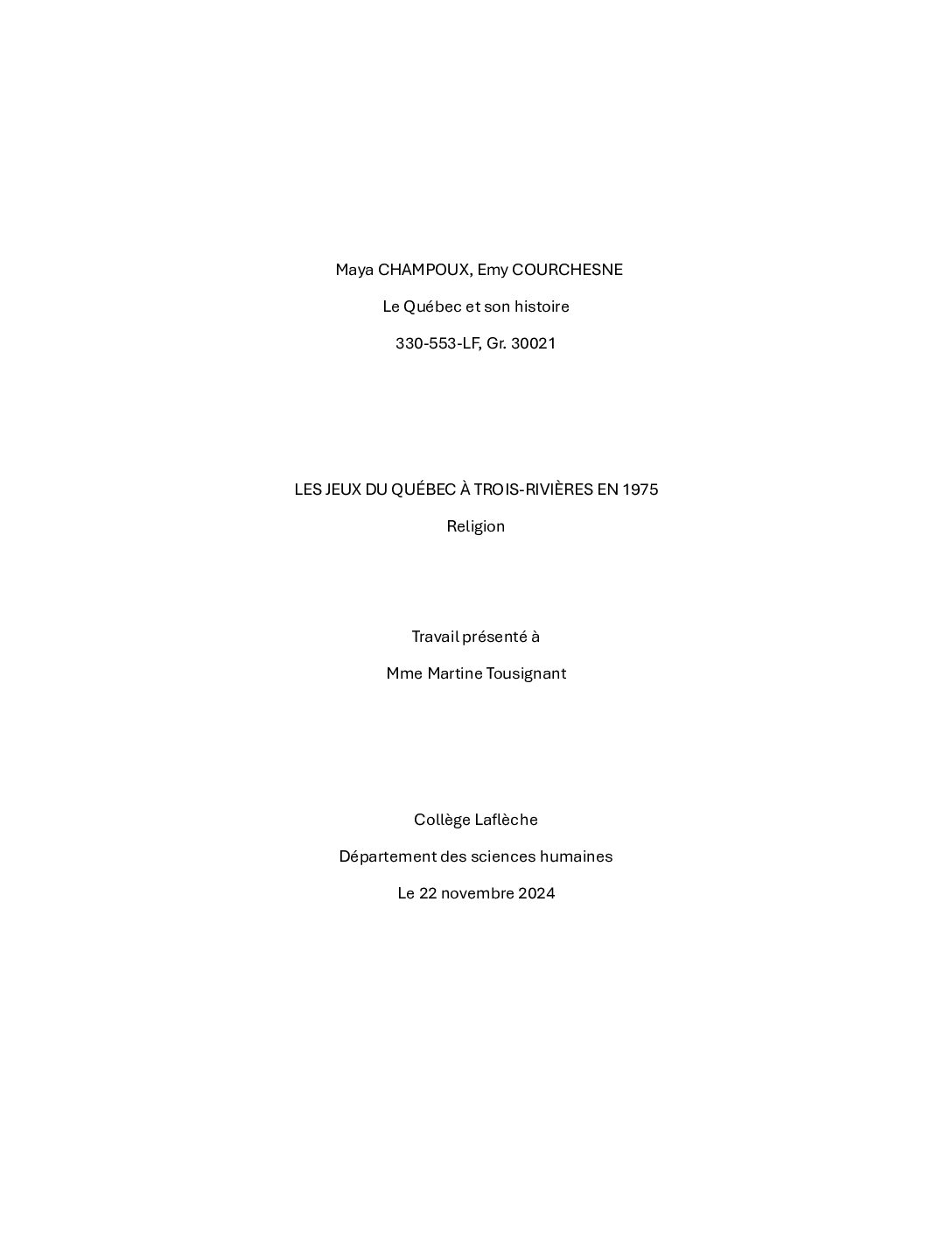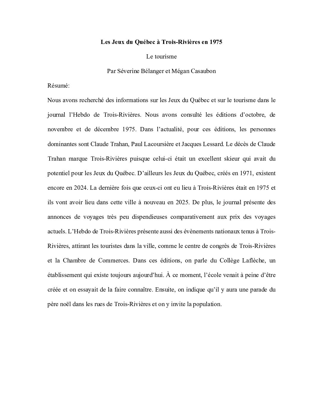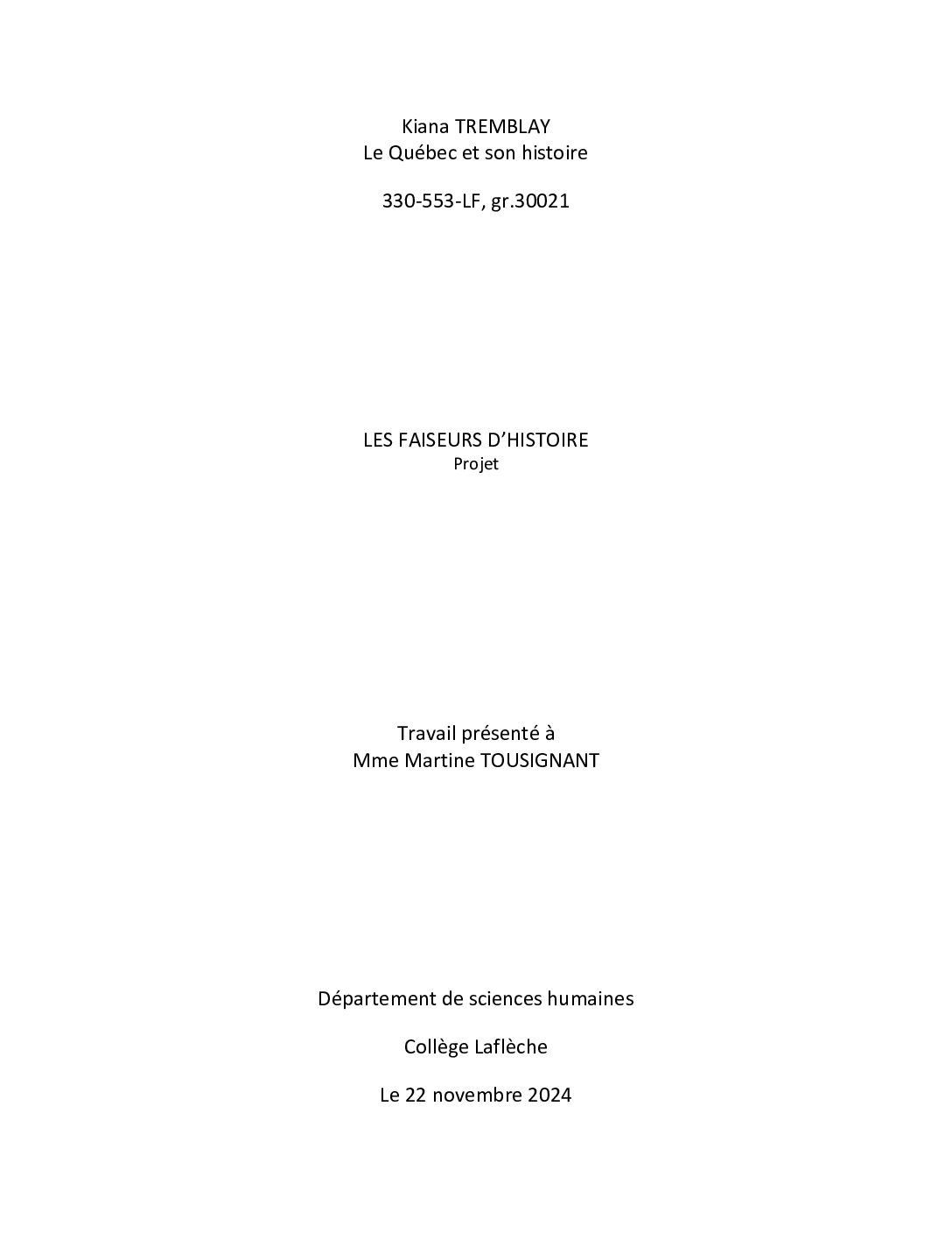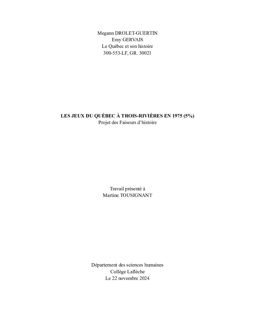 Travaux d'étudiants du Collège Laflèche réalisés dans le cadre du cours "Le Québec et son …