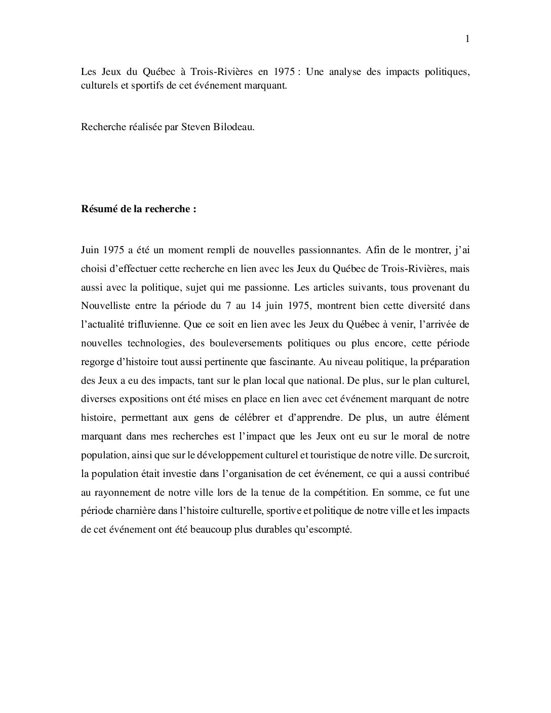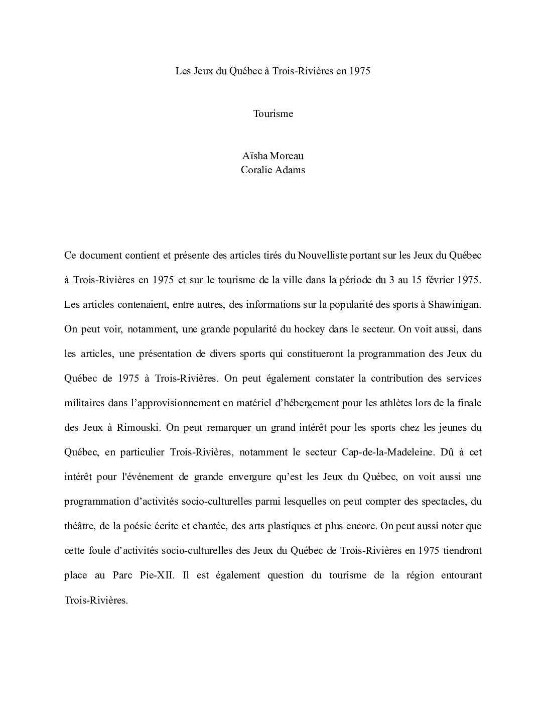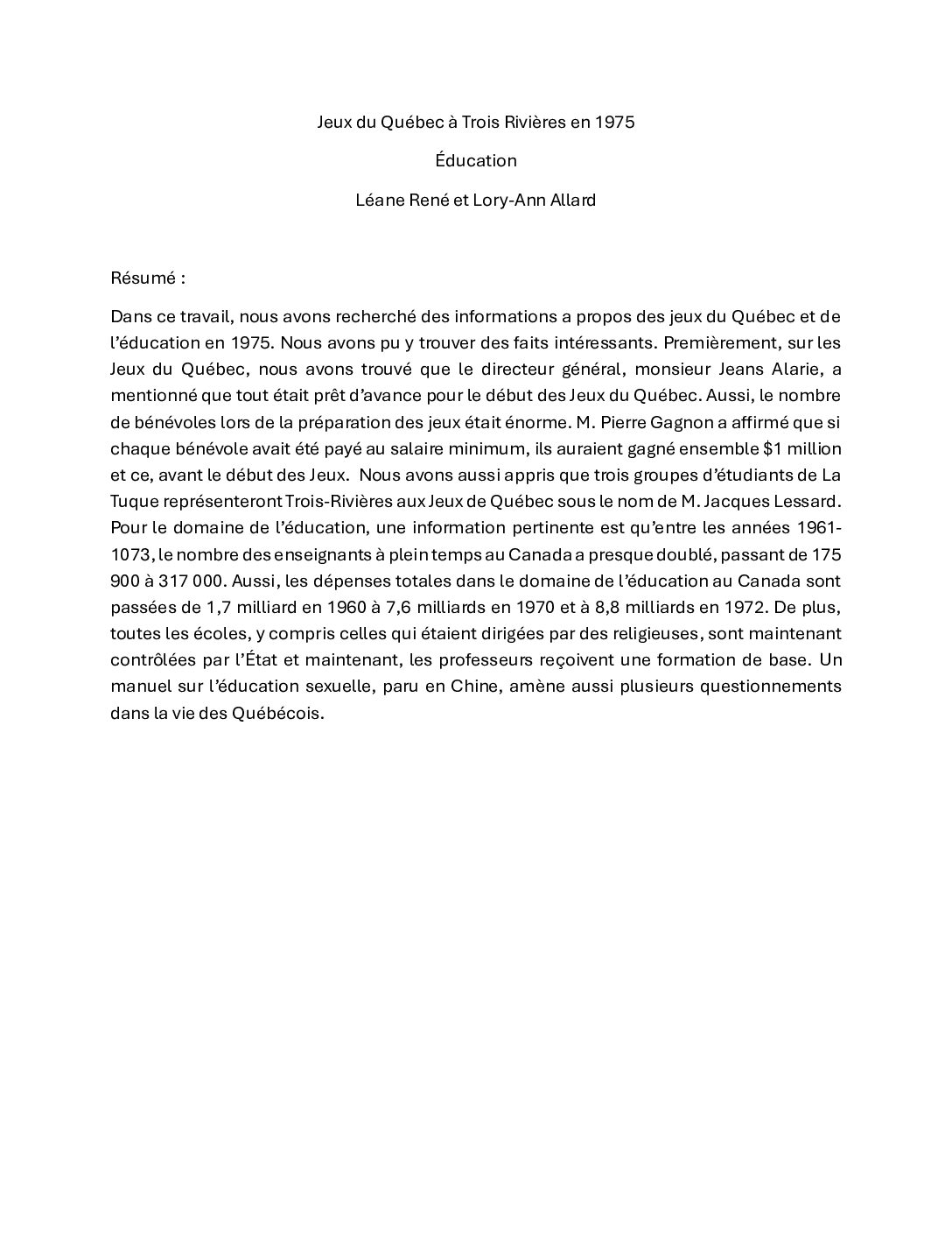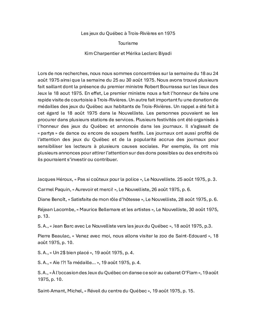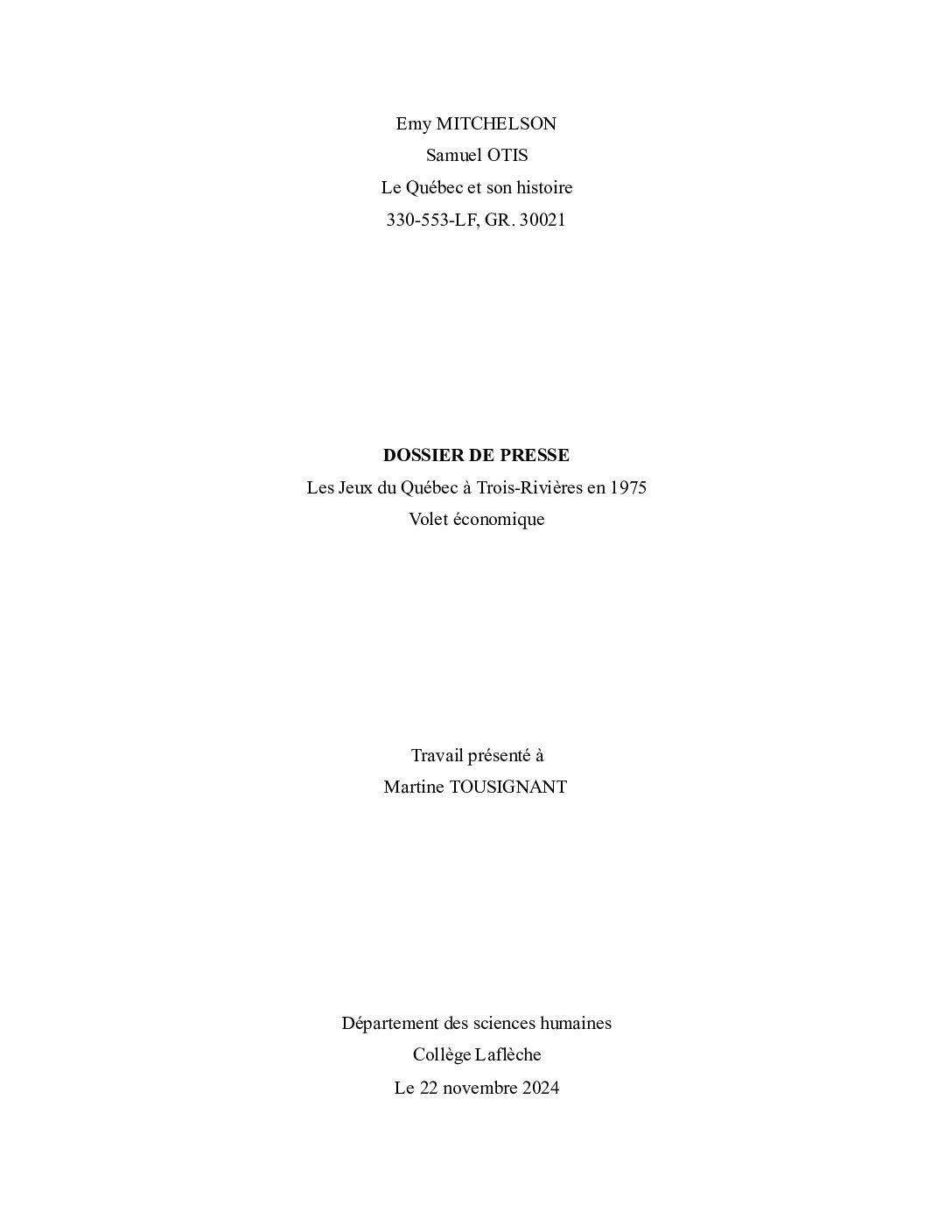 Travaux d'étudiants du Collège Laflèche réalisés dans le cadre du cours "Le Québec et son …