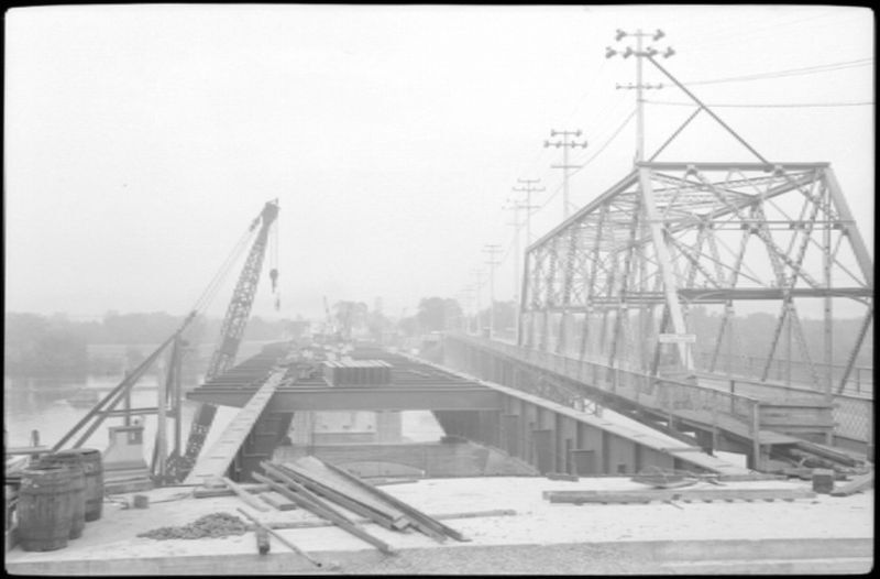 Construction du pont sur le chenal ouest de la rivière Saint-Maurice à Trois-RivièresCamille MilotImageConstruction du pont sur le chenal ouest de la rivière Saint-Maurice à Trois-Rivières, 1947, BAnQ Québec, Fonds Ministère de la Culture et des Communications, (03Q,E6,S7,SS1,D2,P37460), C. Milot.https://numerique.banq.qc.ca/patrimoine/archives/52327/3030846Trois-Rivières (avant le 1er janvier 2002), Cap-de-la-Madeleinehttps://troisrivieresnumerique.ca/documents/construction-du-pont-sur-le-chenal-ouest-de-la-riviere-saint-maurice-a-trois-rivieres/