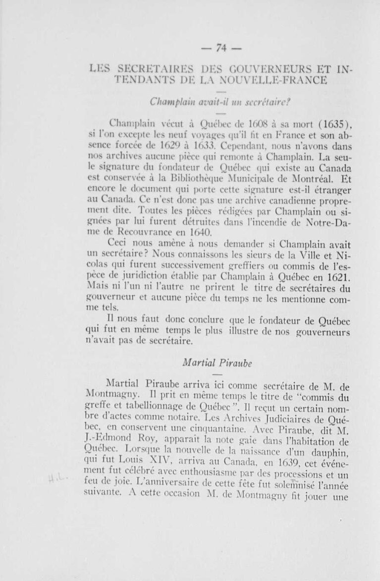 “Les secrétaires des gouverneurs et intendants de la Nouvelle-France”Pierre-Georges RoyTexteBulletin des recherches historiques : bulletin d'archéologie, d'histoire, de biographie, de numismatique, etc. /, 1935-02, Collections de BAnQ.https://numerique.banq.qc.ca/patrimoine/details/52327/2657414Trois-Rivières (avant le 1er janvier 2002)https://troisrivieresnumerique.ca/documents/les-secretaires-des-gouverneurs-et-intendants-de-la-nouvelle-france/