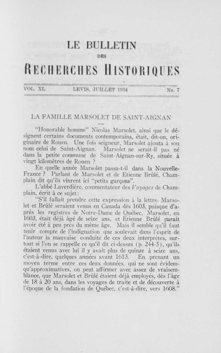Article paru dans le Bulletin des recherches historiques.