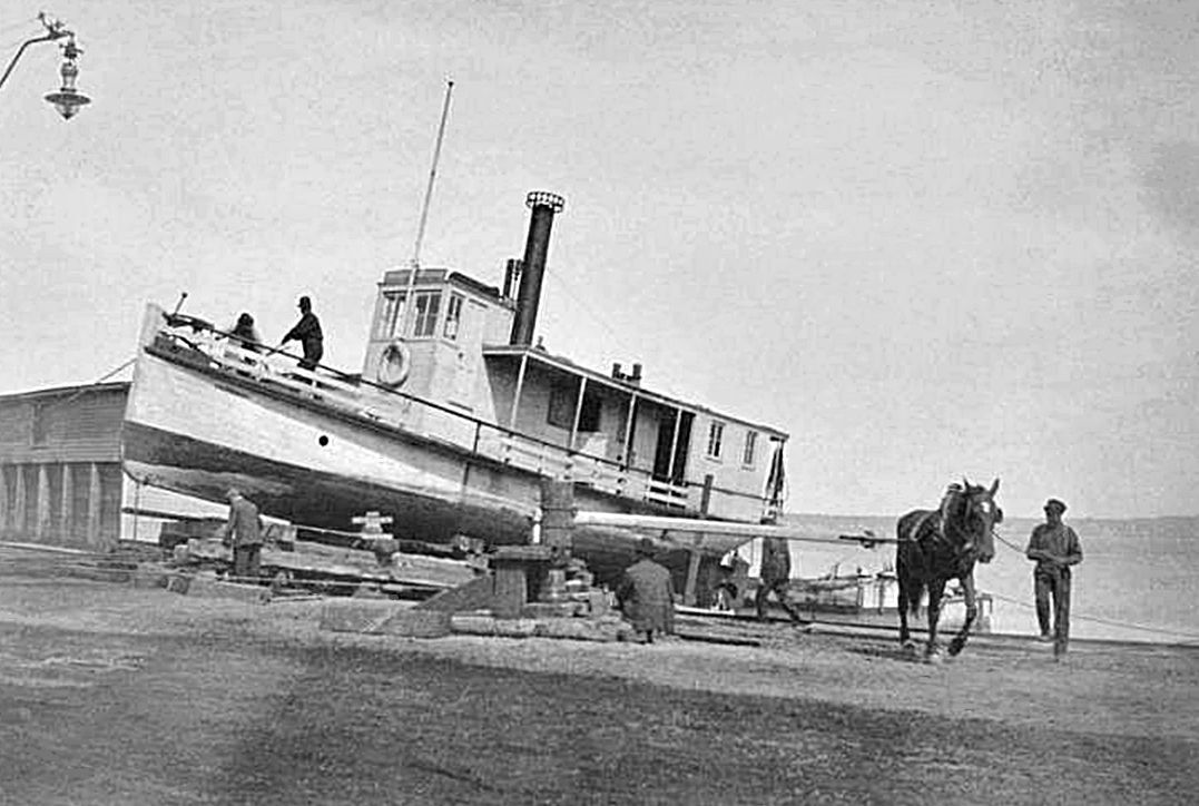 Titre anglais: Small steamer being lifted by horse powered winch - image no. M2011.64.2.2.178.1