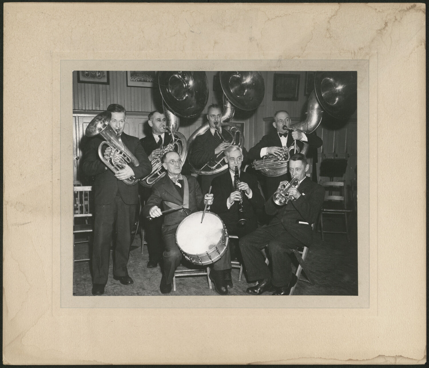 Debout, de gauche à droite : Maurice Panneton, Stanislas Panneton, Alphonse St-Onge et Albert Rocheleau. Assis, de gauche à droite : Louis Charles Robert, Antonin Corbeil et Henri Beaudreau.