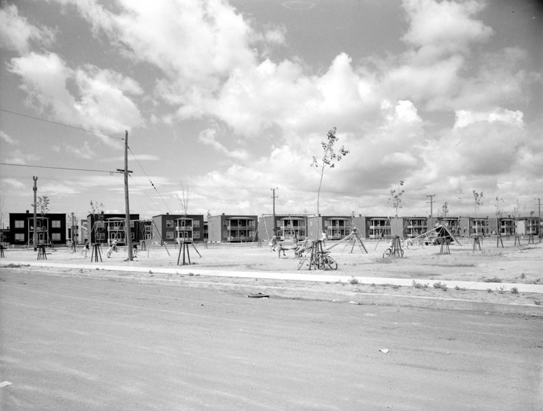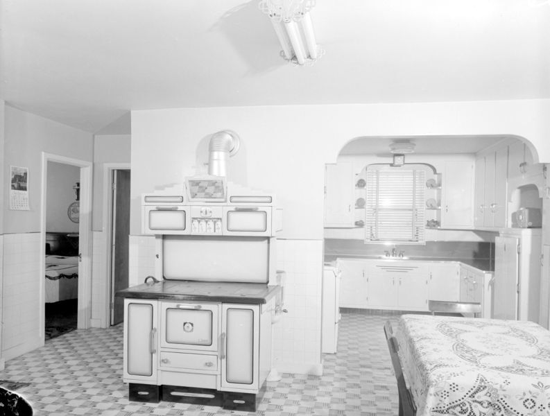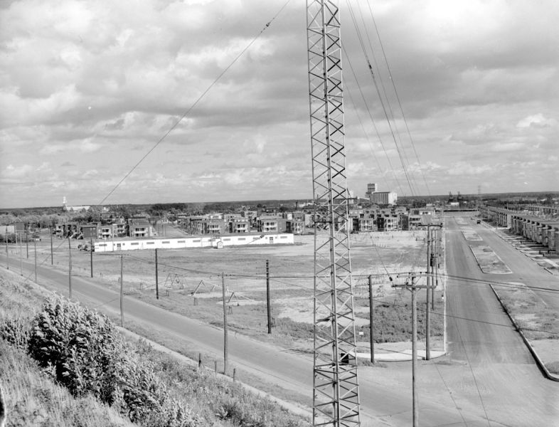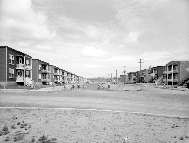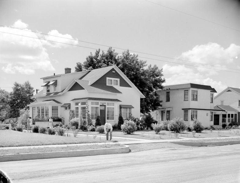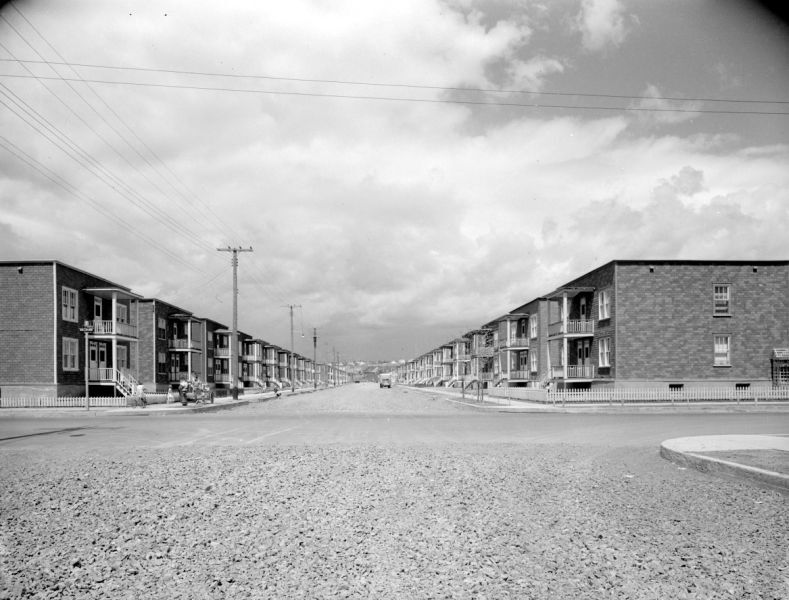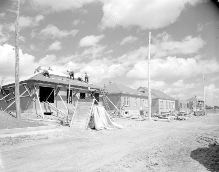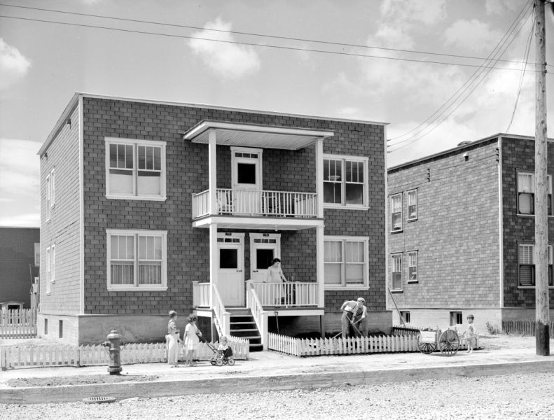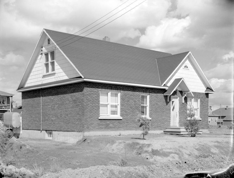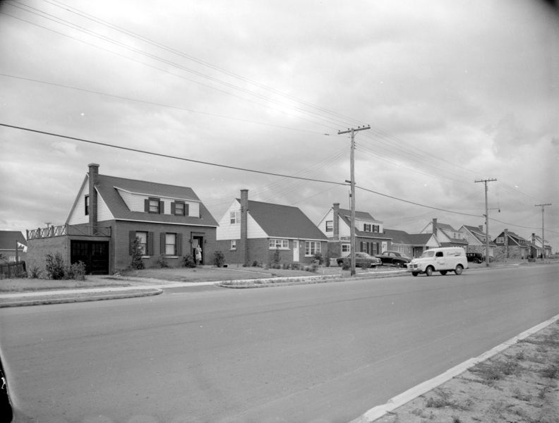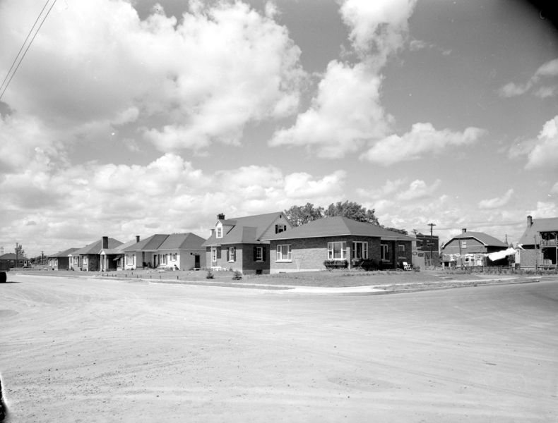"Il s'agit de résidences construites par la Coopérative Sainte-Marguerite à Trois-Rivières. Nous retrouvons des vues de quartier (E6,S7,SS1,P54002, E6,S7,SS1,P54007) dont celui de Spémont (E6,S7,SS1,P54010 à E6,S7,SS1,P54012). Nous voyons des maisons situées sur la rue Normand (E6,S7,SS1,P54004) et sur la rue Mgr-Pelletier (E6,S7,SS1,P54009). Nous apercevons des résidences privées (E6,S7,SS1,P54008) dont celle d'Arthur Baril située sur la rue Jean-Nicolet (E6,S7,SS1,P54014) et de ses voisins (E6,S7,SS1,P54015) ainsi que celle de Pierre Boucher (E6,S7,SS1,P54020). Nous remarquons les travailleurs à l'oeuvre sur une maison en construction (E6,S7,SS1,P54017). Enfin, nous retrouvons des vues d'une cuisine (E6,S7,SS1,P54005 et E6,S7,SS1,P54019). Dossier produit pour le notaire Poirier, ministère de l'Agriculture".