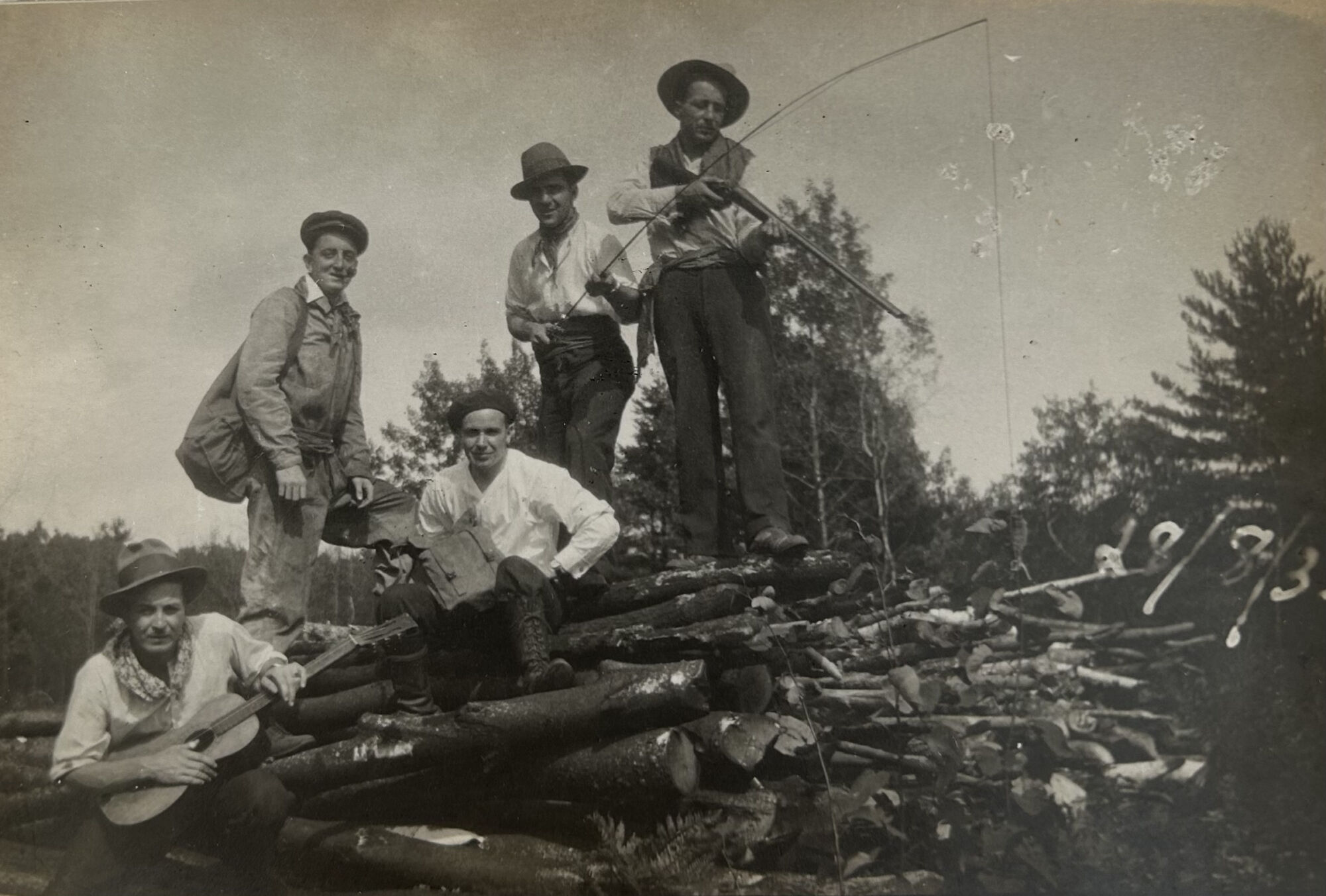 "Le Platon d'aujourd'hui, vu du fleuve. C'est sur cette élévation que la première maison, nous dit M. Arthur Béliveau, fut construite aux Trois-Rivières par le Sieur de Laviolette, en 1634, et autour de cette maison se groupèrent les demeures des pionniers. Sous le régime français, l'habitation qui y fut construite servit de résidence aux gouverneurs puis de casernes pour les troupes. Tout près se trouvaient le magasin du Roi et celui de la Compagnie des Cent-Associés. C'est sur le Platon, ajoute M. Béliveau, dans ses notes, que s'établirent les Ursulines en 1697, et c'est dans l'ancien Château des Gouverneurs, détruit par le feu en 1908, que le séminaire des Trois-Rivières fut fondé en 1908. À gauche, sur le Platon, l'édifice du gouvernement fédéral, en pierre blanche et de style ionien. Photo C.P.R."